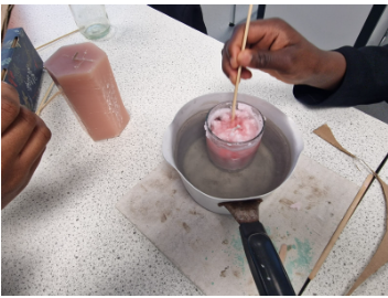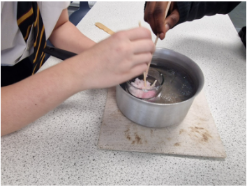 Pupils in STEM Club successfully made their own candles by melting down soy wax, adding fragrance and adding scented colouring ready for use.
