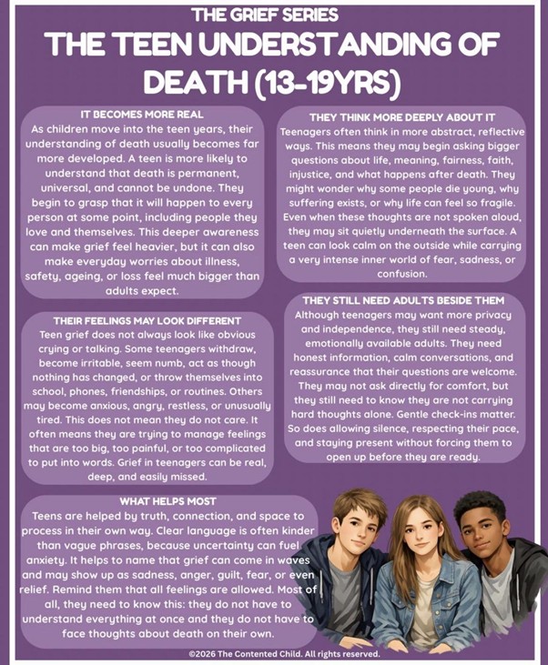 Young people can struggle to process the death of a loved one or even look like they are completely unaffected. It is important to recognise that no reaction to death is also a reaction.