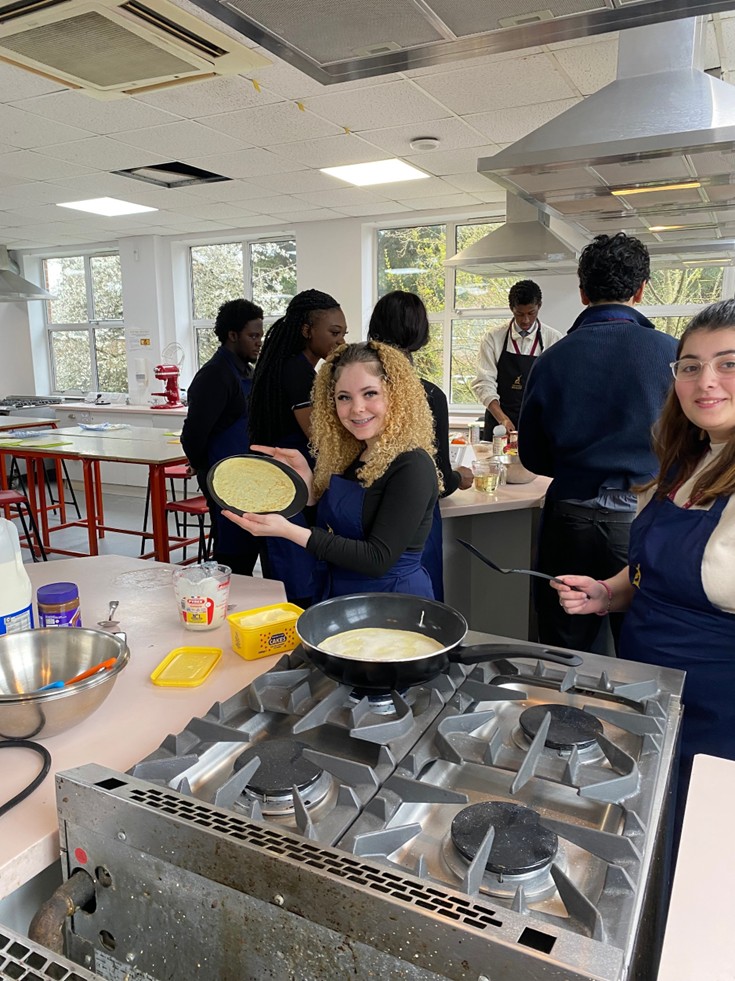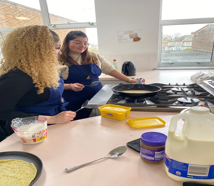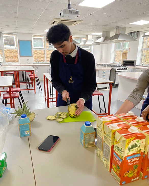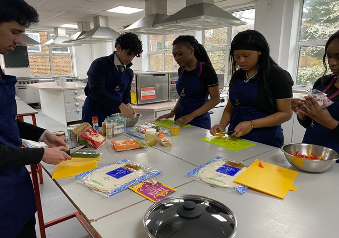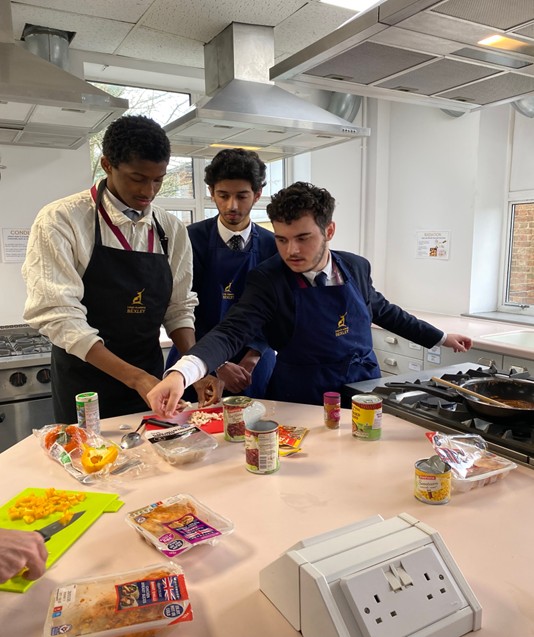 This was followed by a Year 13 “Come Dine With Me” cooking activity. Students were split into groups, with each group allocated a different role. One group prepared the starter and dessert, while another group prepared the main course and a mocktail.